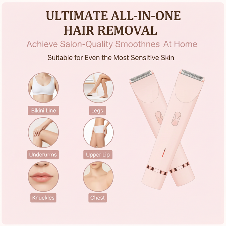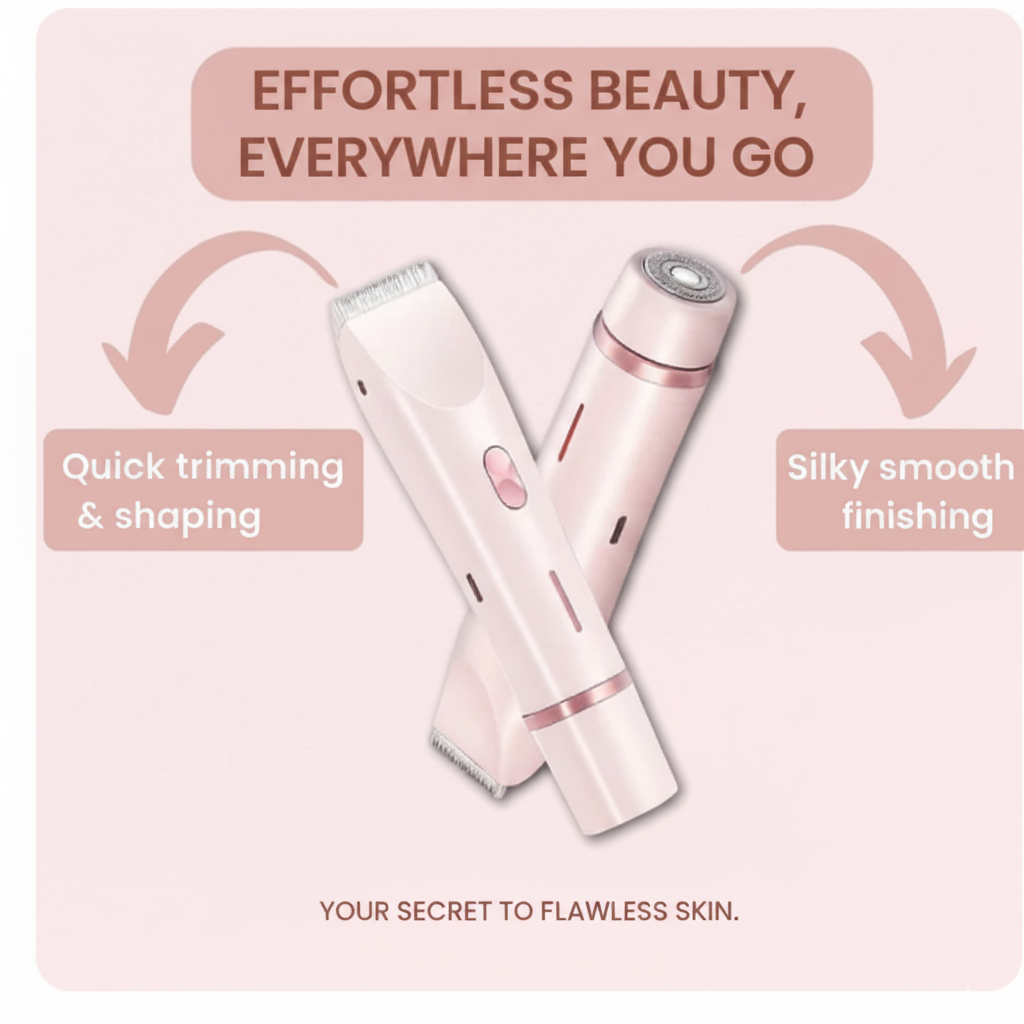 Trimora’s powerful dual-end design packs precision and smoothing heads with skin-friendly hypoallergenic blades. Fully waterproof and USB-rechargeable, it gives you cordless freedom and ultra-compact portability—ready to keep you looking flawless anytime, anywhere!
